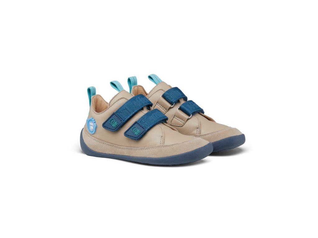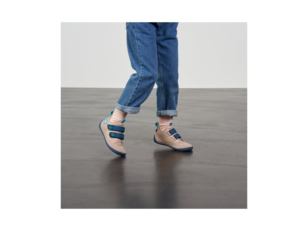 Children's transitional barefoot shoes with an ergonomic shape, with a breathable membrane and reflective elements.