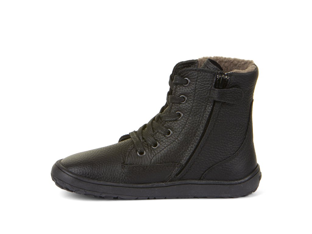 Leather barefoot footwear with a TEX membrane, insulated with 100% sheep wool on a new, non-slip sole.