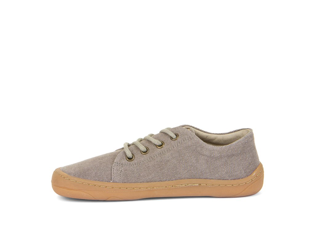 Barefoot Grey sneakers for kids with ultra-flexible sole and Zero Drop. Breathable organic cotton upper, soft microfiber lining, and adjustable lacing ensure a natural, comfortable fit.